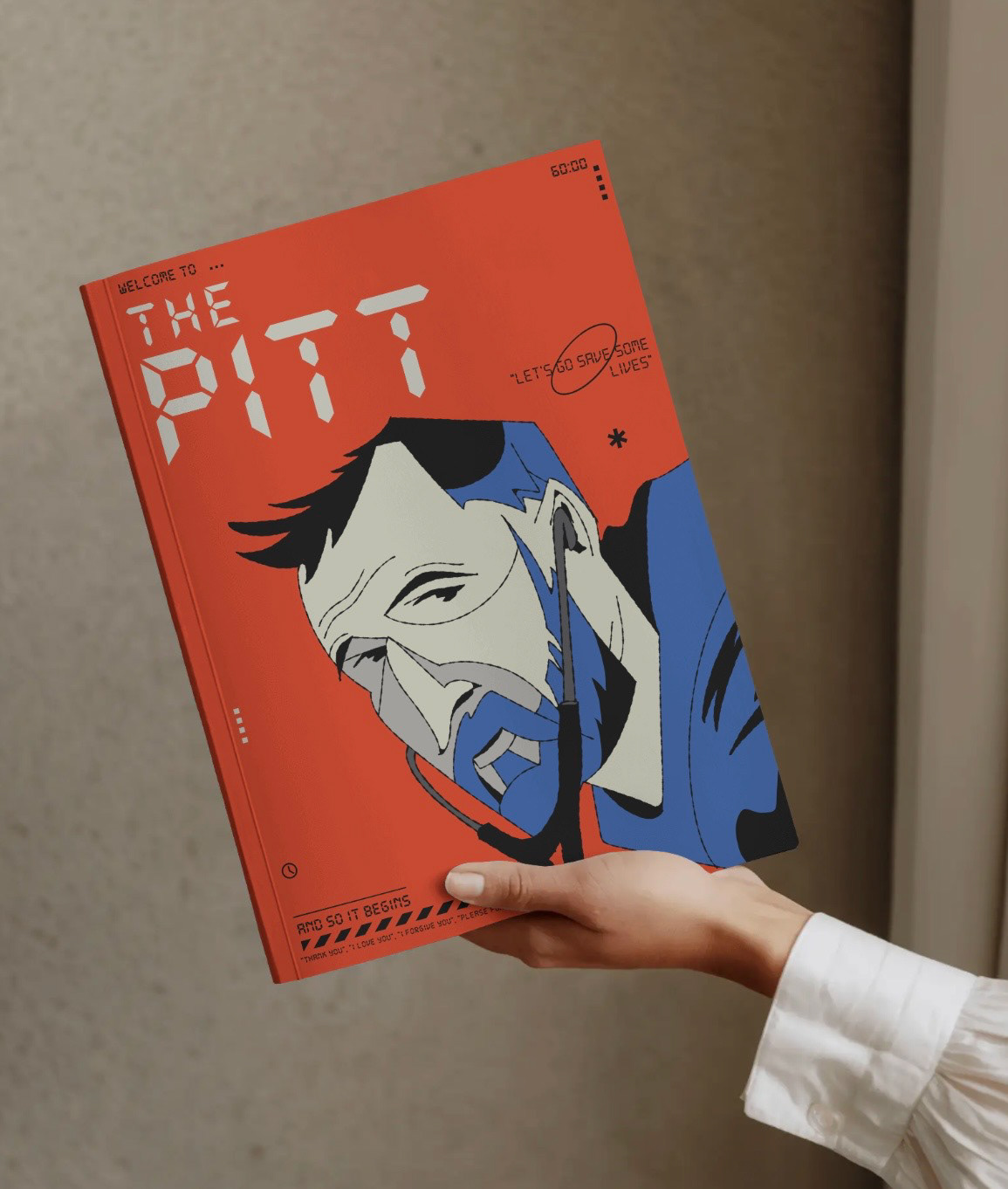 Ilustración inspirada en el Dr. Robby de la serie THE PITT.